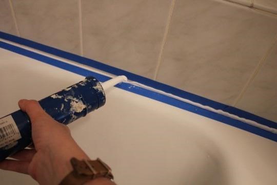 Способ подходит для заделки шва до 1 см. Поверхность также следует очистить и обезжирить. Если требуется нанести ровно герметик, края ванны и стены заклейте молярной лентой, герметик лучше всего наносить пластиковым шпателем. Излишки уберите влажной салфеткой.