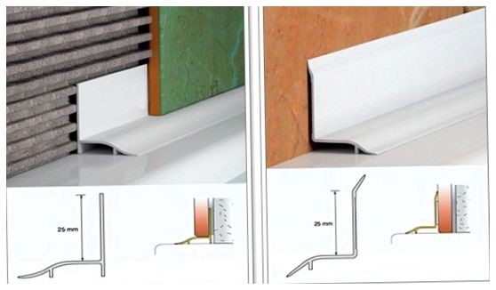Способ достаточно распространённый и доступный. Пластиковые плинтусы существуют 2-х видов, одни ставятся после установки купели, но до облицовки стен, вторые после установки купели и облицовки стен на герметик. Лучше всего соблюсти все правила ремонта и установить сначала ванную купель затем бордюр (если требуется) после чего выложить стены плиткой, так как поле облицовки стен и установки ванной, пластиковый плинтус может не совсем качественно прижаться к стене из-за неровностей, в следствии будет попадать влага и может развиться грибок под пластиковым плинтусом.