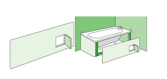 - Любой экран должен обеспечить простой и быстрый доступ к коммуникациям под ванну. Для этого можно предусмотреть технологическое отверстие и установить дверцу.