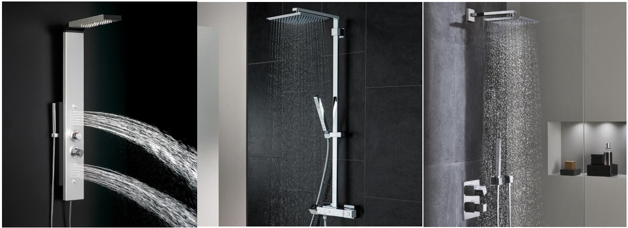 Выбирая душевую систему, надо принимать во внимание не только размер лейки, но и количество форсунок, так как при схожем объёме, количество может быть в 2 раза больше, они как раз и предают то чувство падающего ливня. Душевые системы устанавливаются довольно просто, нужно лишь только заблаговременно определиться с вариантом. Это может быть просто душевой комплект, который монтируется к смесителю, так же может быть со своим изливом, термостатом и со своим смесителем. Для ванны лучше всего выбирать систему со своим смесителем и изливом, в данном случае вам не понадобится лишний раз тратиться ещё на один смеситель, а вот для душевых кабин, лучше всего выбрать стойку с термостатом.